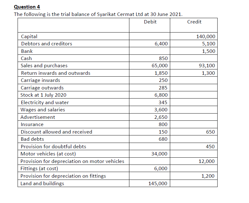 Solved Question 4 The Following Is The Trial Balance Of Chegg Com