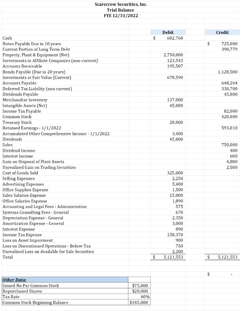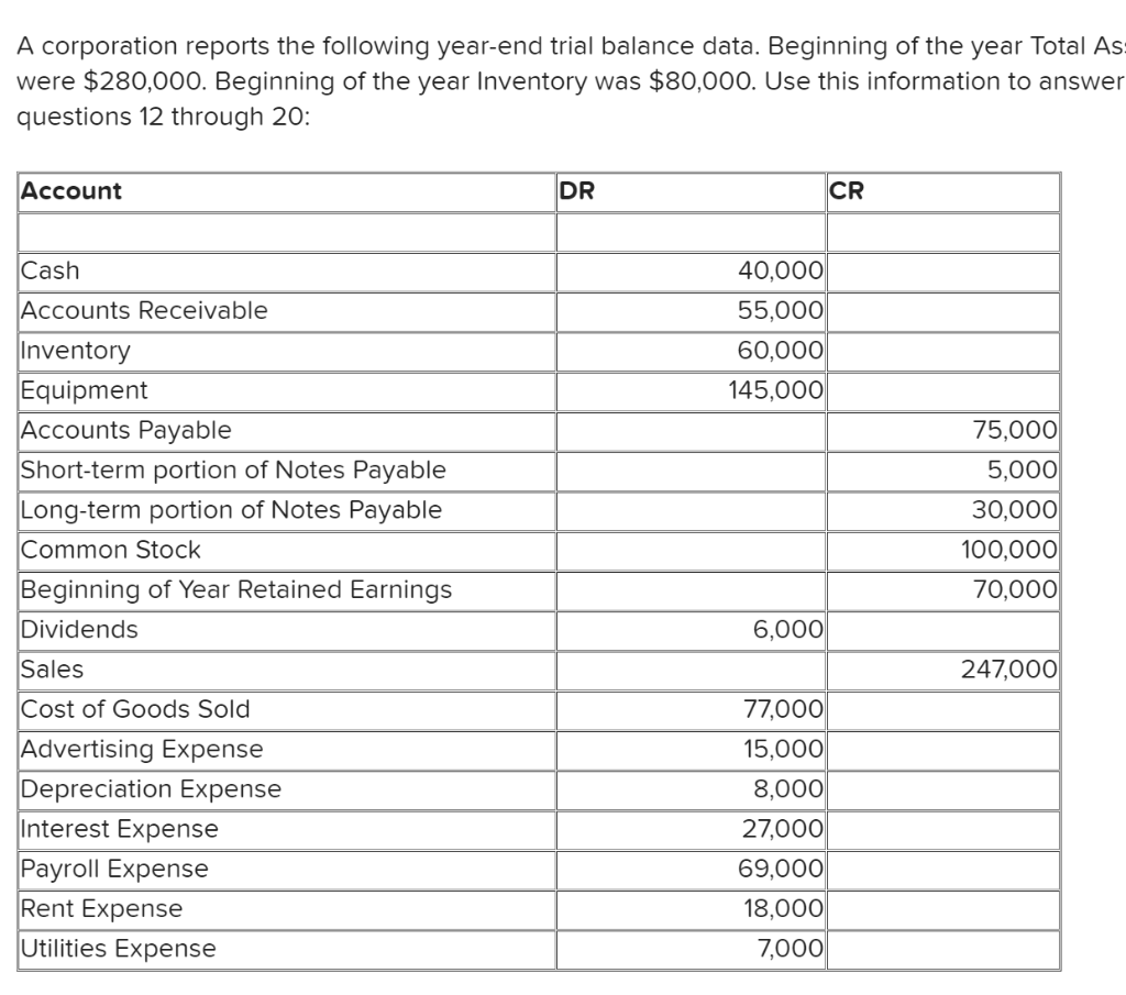 Solved A Corporation Reports The Following Year End Trial Chegg Com